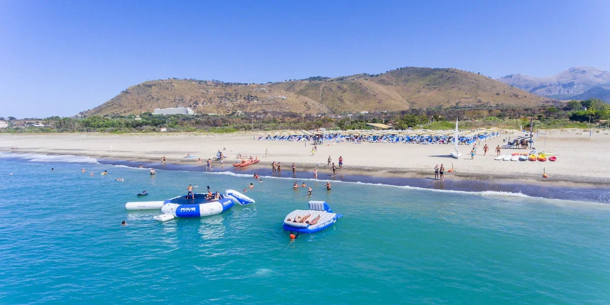 La struttura Costa Verde Acqua Park & SPA Hotel dista 1,5 km dalla spiaggia , raggiungibile con navetta (continua e gratuita). Spiaggia di sabbia con ghiaia sulla battigia, privata, attrezzata e servizio spiaggia incluso (ombrelloni e sdraio).